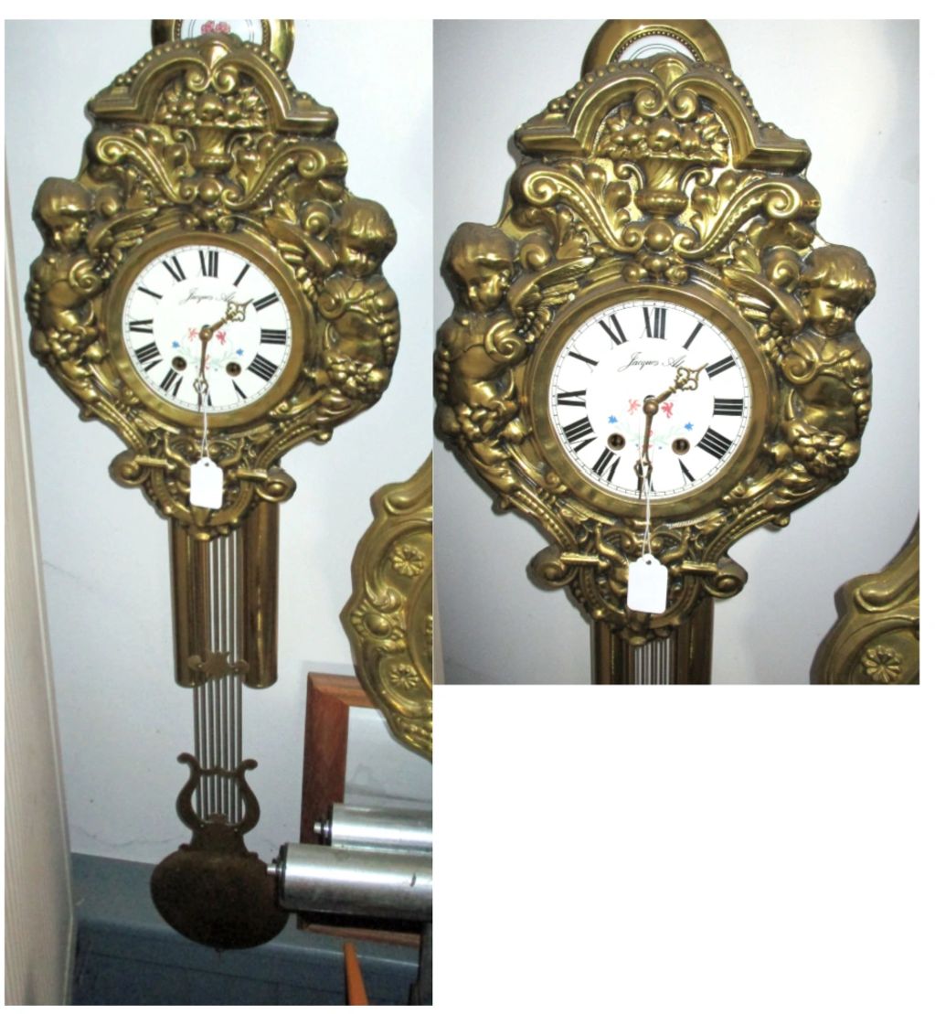French Comtoise, Robert and a' Alby, believed to be 19th Century movement. Complete with pendulum and weights. Runs and keeps good time.