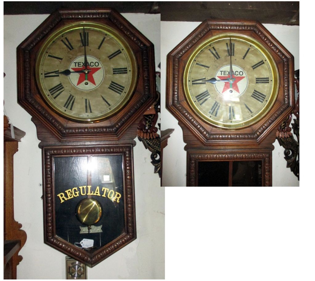 Antique waterbury wall clock sporting a Texaco advertising logo made for service stations. 8 day movement.