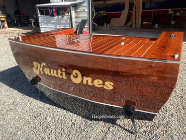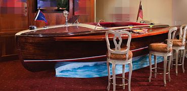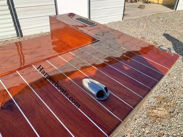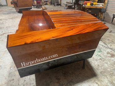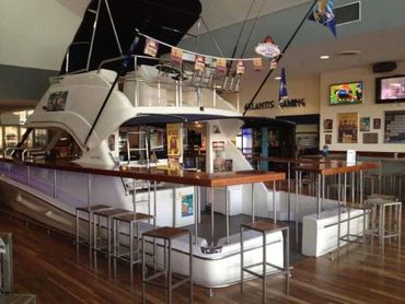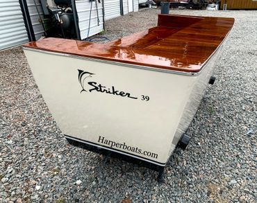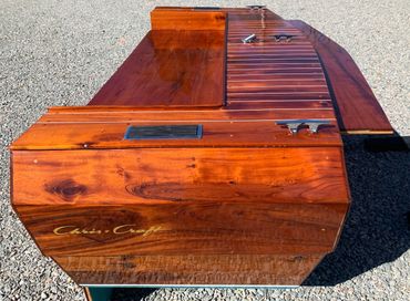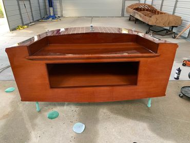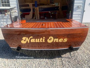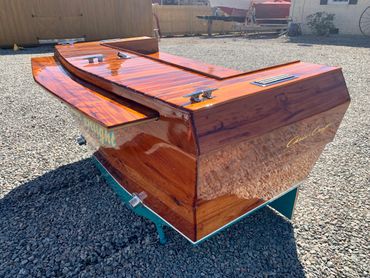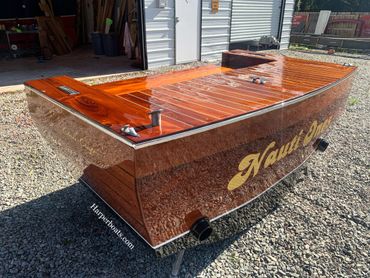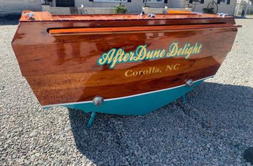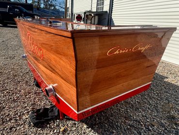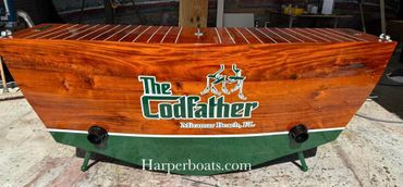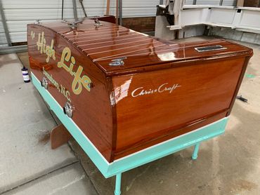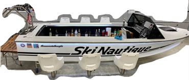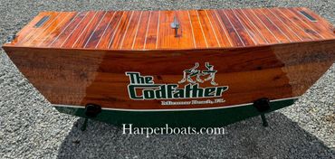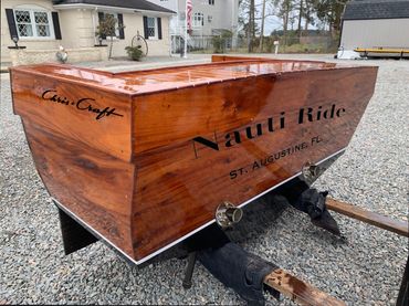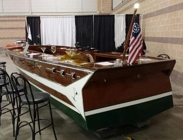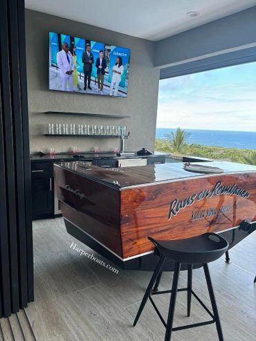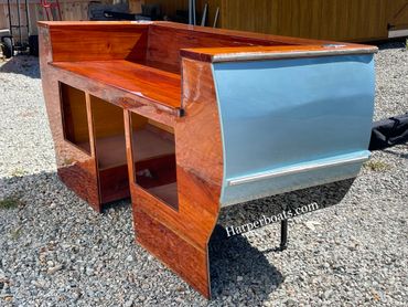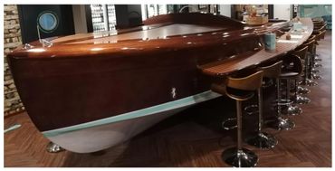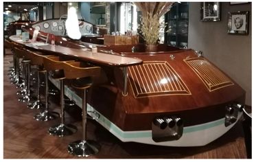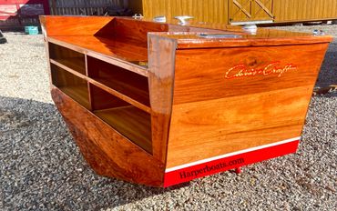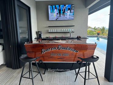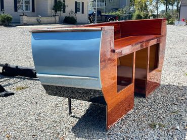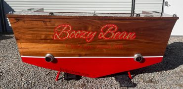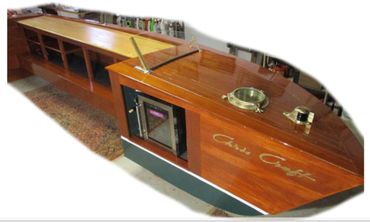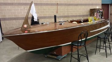 This is a 1952 19ft Chris Craft Holiday that we repurposed into a full size boat bar. Can customize a boat bar for you any length, style, color, etc etc. Call 603-455-5660