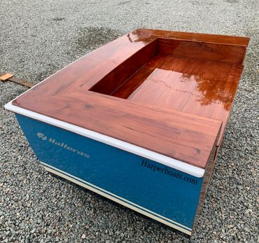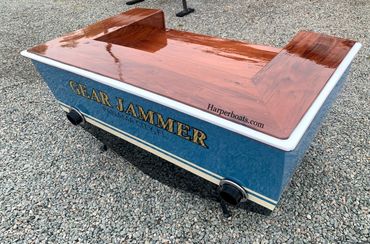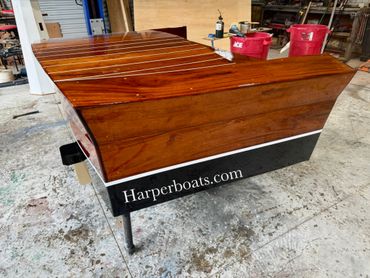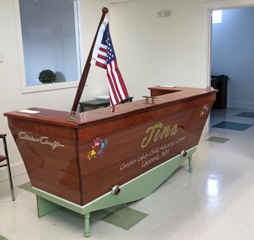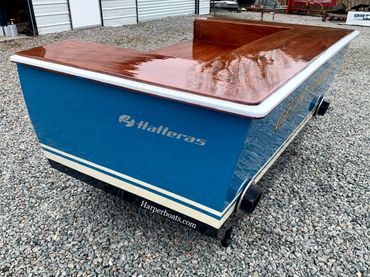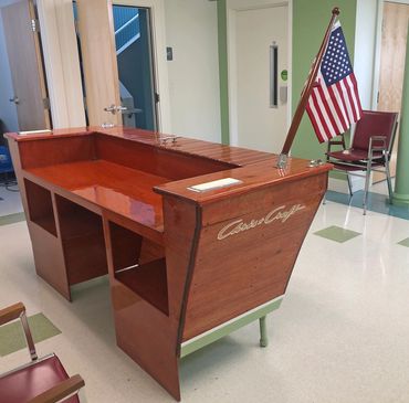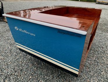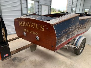 This is a 1953 16ft Century Resorter that we repurposed into a full size boat bar. Can customize a boat bar for you any length, style, color, etc etc. Call 603-455-5660