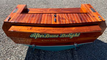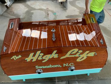 We repurposed a 1939 18ft Chris Craft Runabout that was getting ready to be destroyed. And turned it into a double boat bar to enjoy for many years to come. Can customize a boat bar for you any length, style, color, etc etc. Call 603-455-5660
