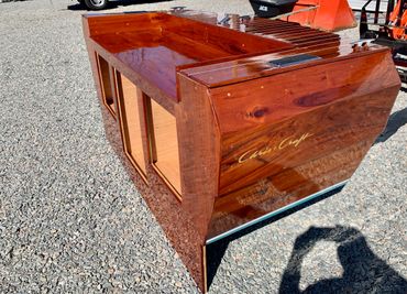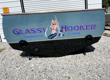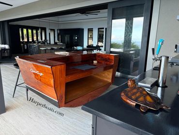 This was a 1959 Chris Craft boat bow section that we made into an outdoor boat bar. We had already sold the stern section and made that into a boat bar. Can customize a boat bar for you any length, style, color, etc etc. Call 603-455-5660
