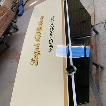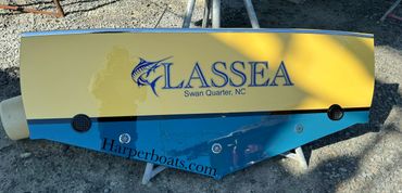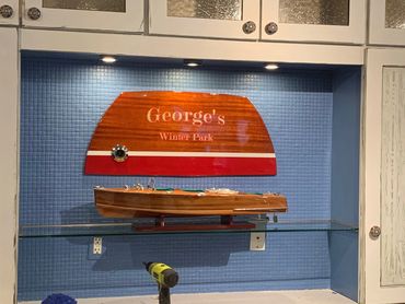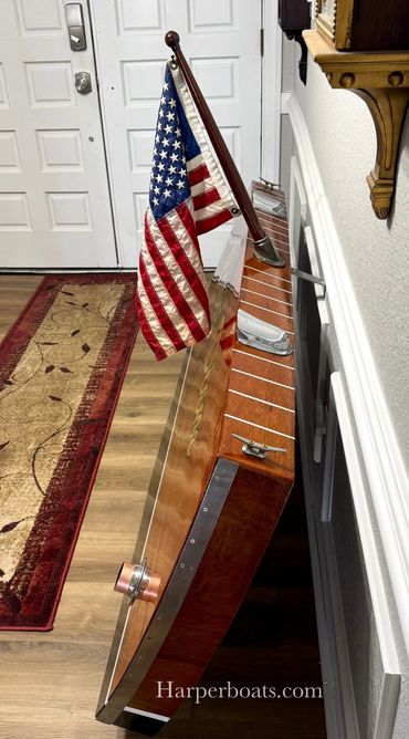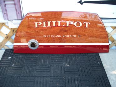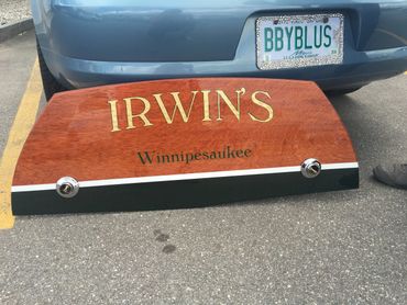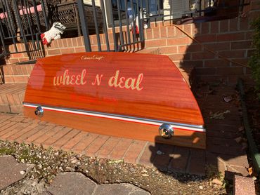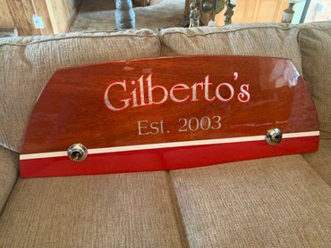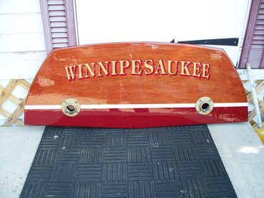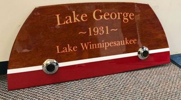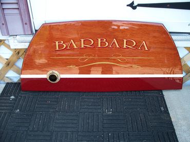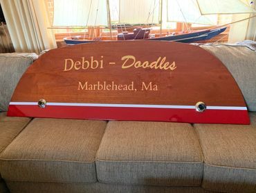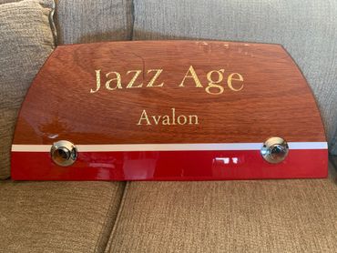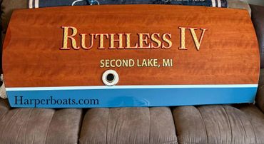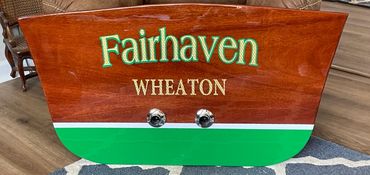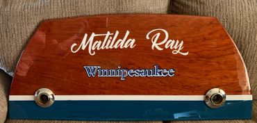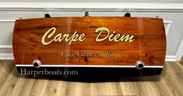 We can write anything you want on these transom replicas based on classic mahogany boat designs.